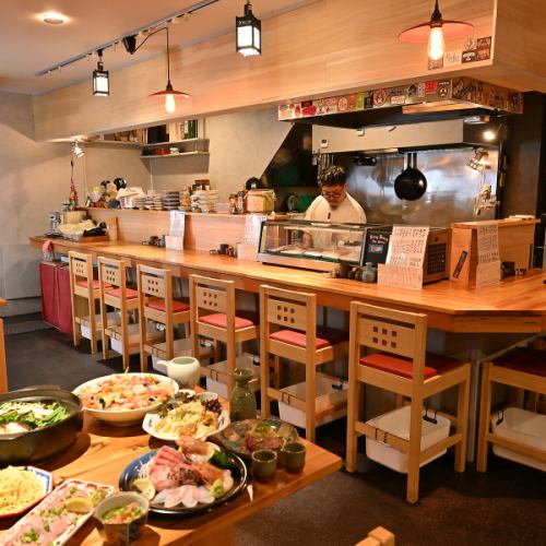もちろんお一人様も大歓迎!ふらりとお気軽にお立ち寄りいただける雰囲気も当店の魅力のひとつ。スタッフの活気を感じられるカウンター席は人気の特等席!ご友人やパートナーとのお食事にもおすすめです。